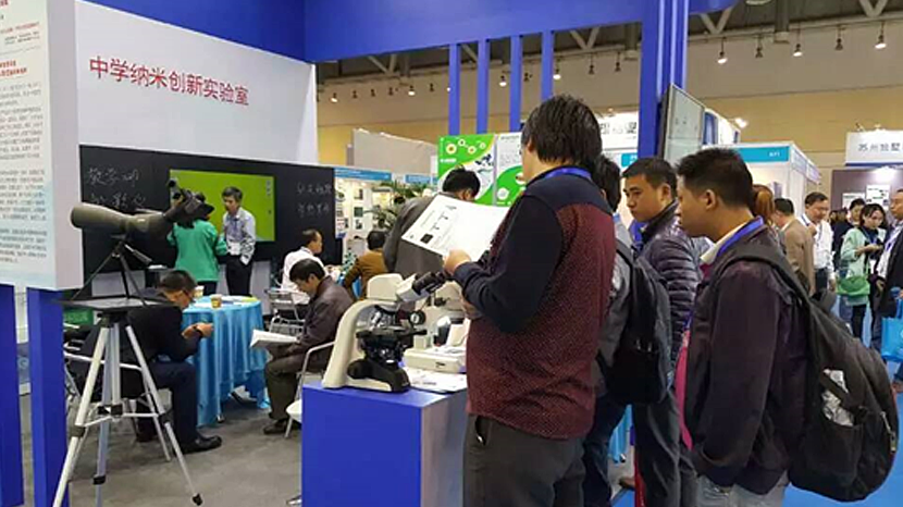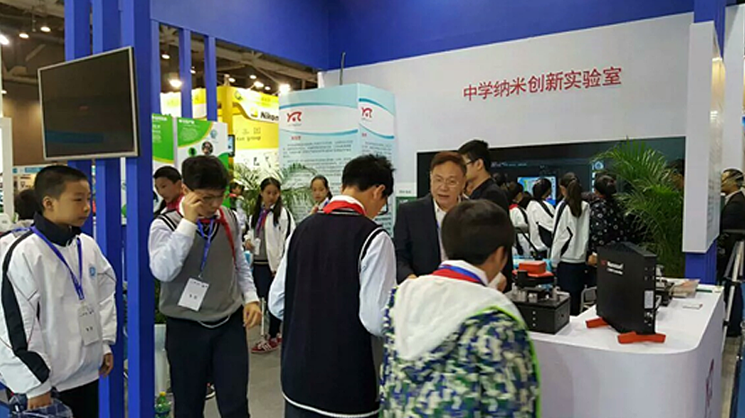 说到独特,是因为承祚纳米是全国唯一专做纳米科技教育的企业,也是全国第一家将扫描隧道显微镜和原子力显微镜引入中学教育装备的企业。纳米科技是当代科技人的事业,也是未来纳米科技人才的事业,承祚纳米就瞄准了这个方向,让中学生看“看不见“,发现无穷“小”,把打造纳米科技教育产品作为企业的方向,并成功打入国内中小学教育市场。进驻纳米城短短一年的时间,承祚纳米就在全国数十间中学建立了“纳米实验室”,创建了包括设备、仪器、教材、培训等一站式解决方案,获得学校和老师、学生的一直认可。这次纳博会,他们就将整个“中学纳米实验室”搬到了展位上。