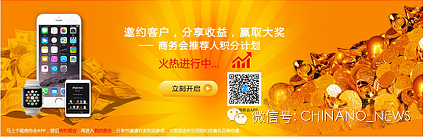 CHInano 2015携手商务会(全球唯一基于展会的商务社交平台)推出“推荐人积分计划”。通过商务会登记参观纳博会,不仅可以贵宾入场,更可享受推荐人积分计划:成功邀请业务伙伴到现场参观,即可获得大额积分回赠并有机会赢取惊喜礼品。