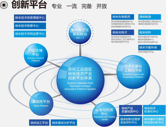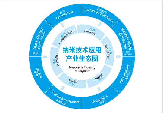 苏州工业园区是国内第一个把纳米技术产业作为引领转型升级的战略性新兴产业的区域,探索性的提出了“产业生态圈”的发展模式,构筑产品上下游、产业链、创新链、投资链、服务链、人才链等相互作用、相互依存、相互促进的互动体系,全力推动以纳米科技为纽带的领先技术、创新产品、高端人才、产业资本、支撑平台、创新载体等六大产业要素的聚合。