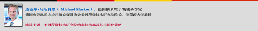 迈克尔•马斯科思( Michael Maskos)是德国知名微流体科学家、美茵茨大学教授、美因茨微技术研究院(Fraunhofer ICT-IMM)院长,该研究院在迈克尔的领导下成功孵化16家高科技企业。据了解,美因茨微技术研究所隶属于德国弗劳恩霍夫应用研究促进协会化学技术研究所,弗劳恩霍夫应用研究促进协会是欧洲最大的从事应用研究方向科研的机构。美茵茨大学是德国第十大高校之一,在材料科学领域具有较强的实力。本届大会期间,他的演讲主题为“美因茨微技术研究院纳米技术部及其市场化策略”。